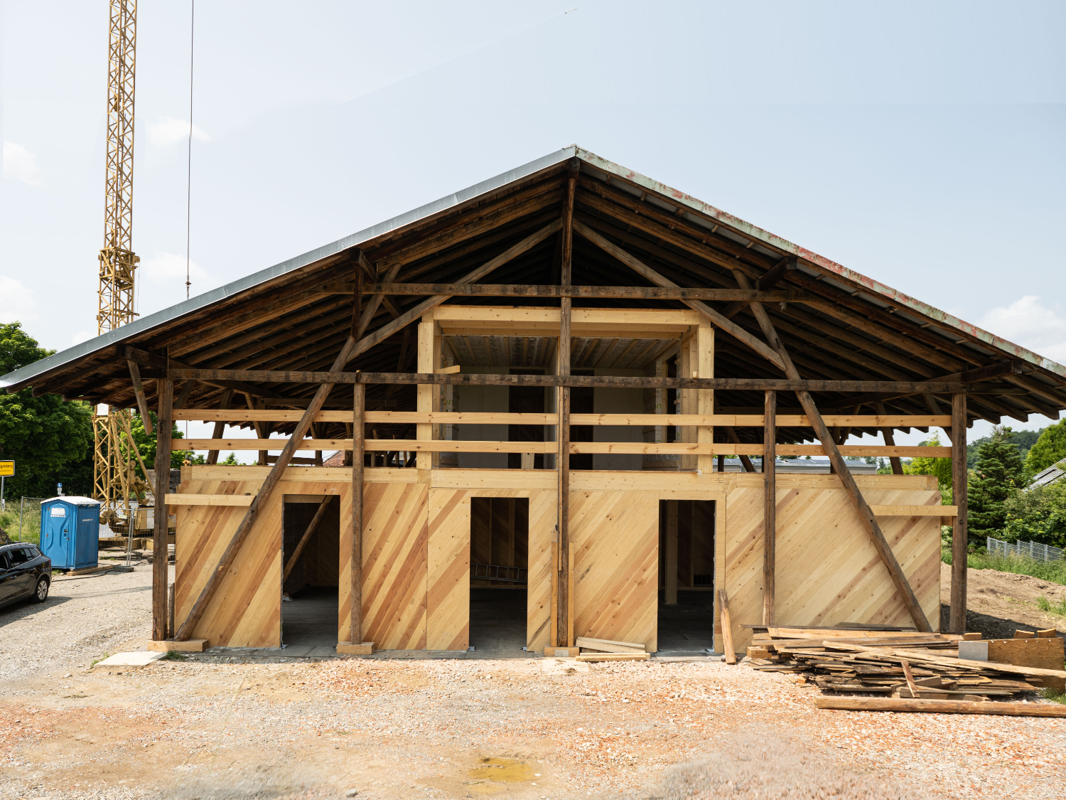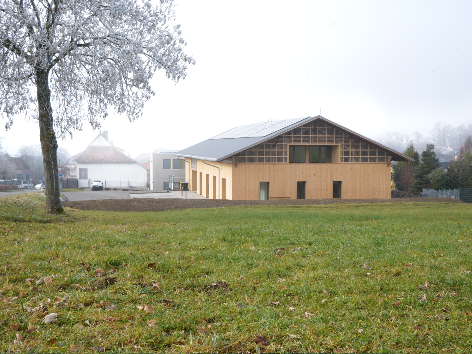 Einbau eines Therapiegebäudes in eine stillgelegte Forsthalle, Heiligenberg